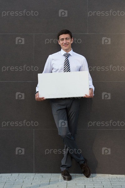 Бизнесмен показывает чистый баннер