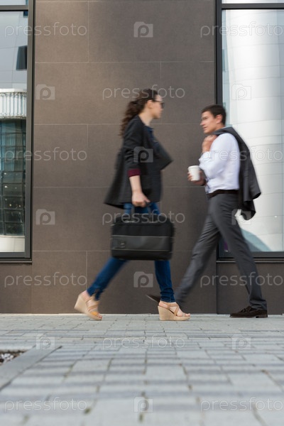 Деловые люди идут по улице