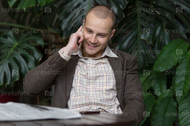 Бизнесмен говорит по телефону