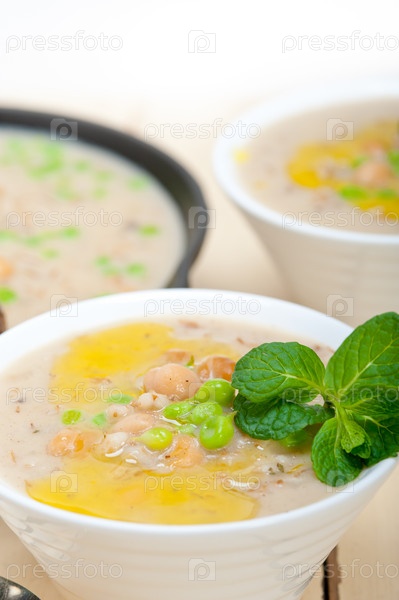 Сытный ближневосточный суп с нутом и ячменем