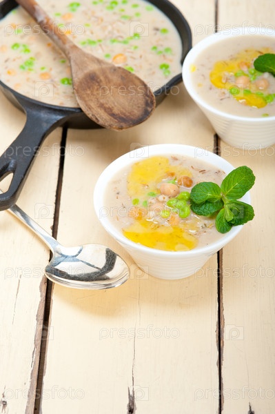 Сытный ближневосточный суп с нутом и ячменем