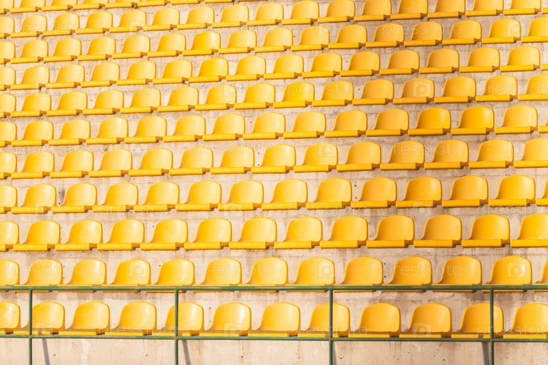 Желтые сиденья на футбольном стадионе