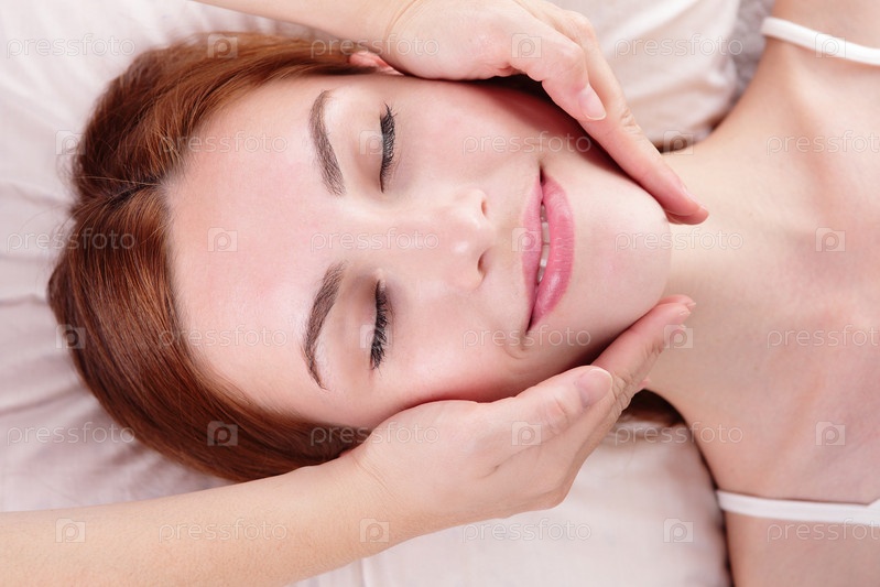Молодая женщина наслаждается массажем лица