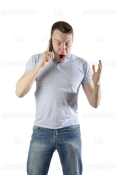 Злой мужчина говорит по мобильному телефону