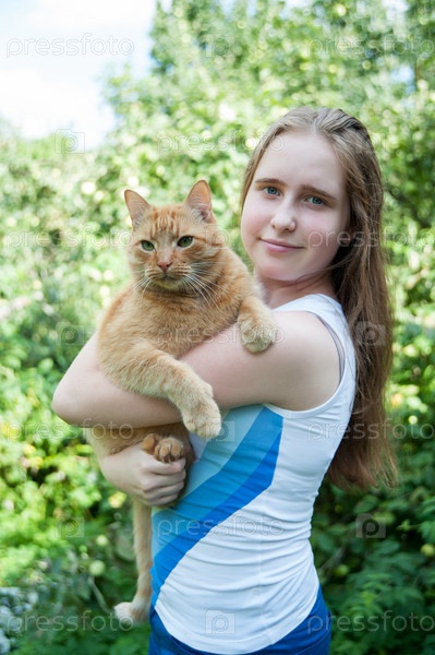 Девочка-подросток с котом