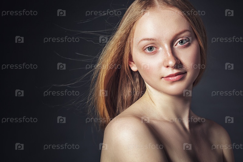Студийный портрет женщины с развевающимися волосами