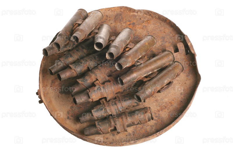 Гильзы времен Второй Мировой войны, изолированные на белом фоне