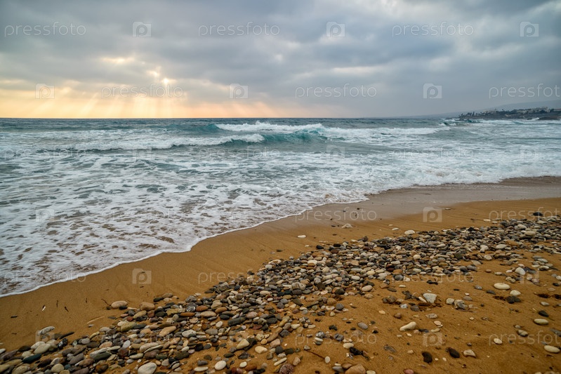 Закат над морем и пустой пляж