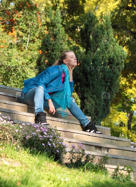 Девушка сидит на ступенях