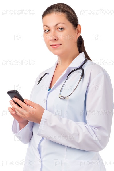Портрет женщины в одежде доктора с телефоном