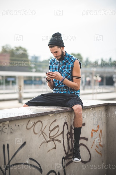 Молодой красивый бородатый хипстер