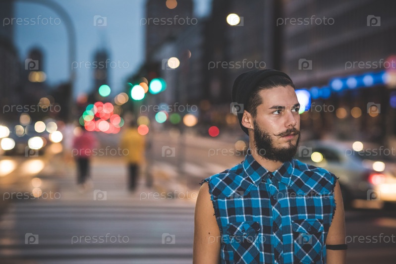 Молодой красивый бородатый хипстер