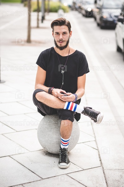 Молодой красивый бородатый хипстер