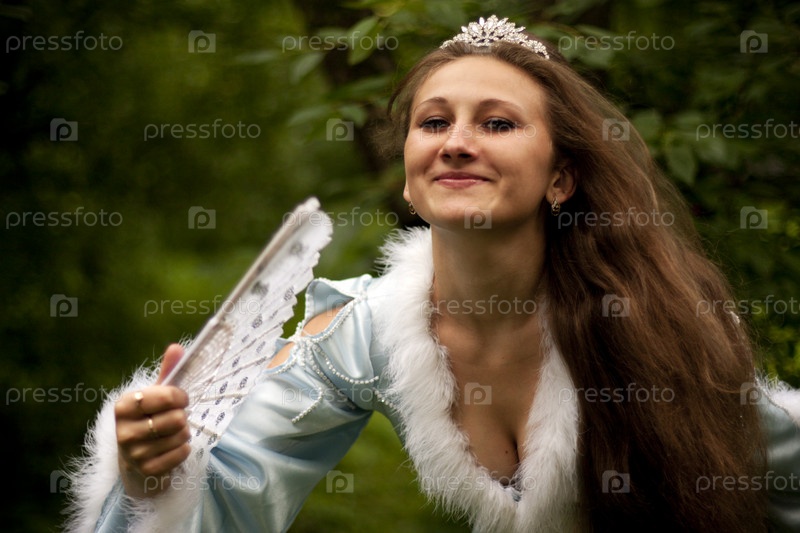Снегурочка с веером на зеленом фоне