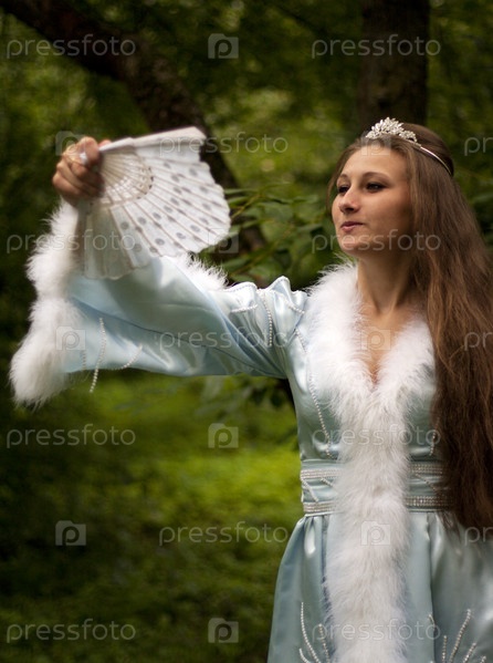Снегурочка с веером в летнем парке