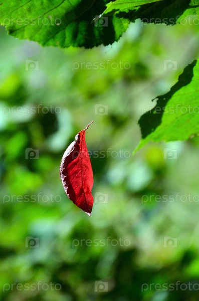 Красный лист висит на паутине