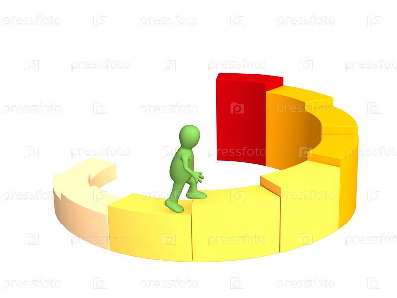 Стилизованный 3d человечек, поднимающийся по диаграмме