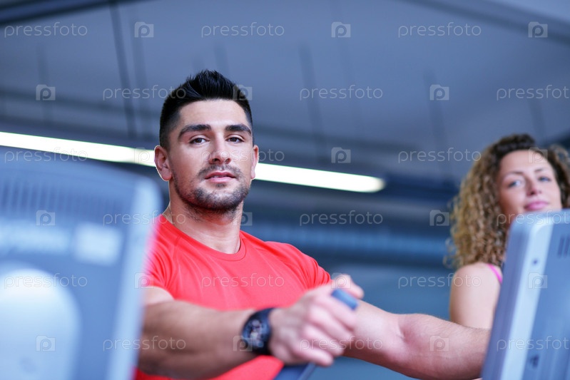Группа людей, бегающих на беговых дорожках