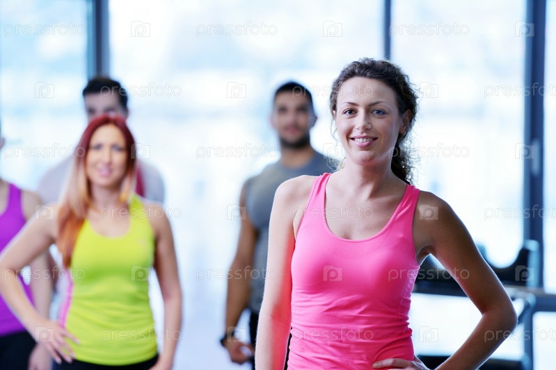 Группа людей тренируется в тренажерном зале