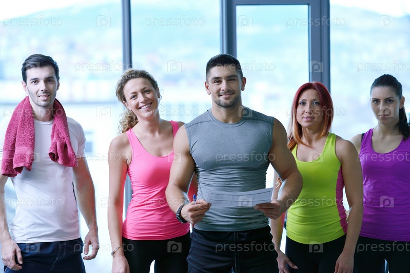 Группа людей тренируется в тренажерном зале