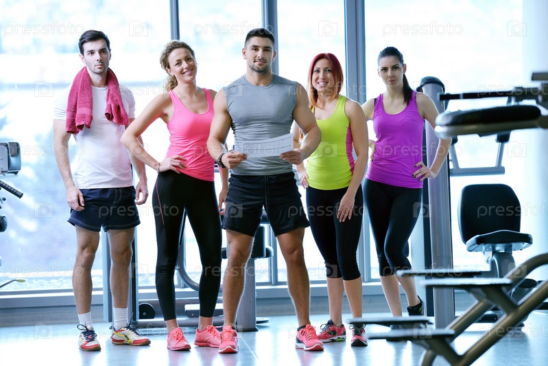 Группа людей тренируется в тренажерном зале
