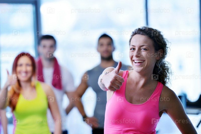 Группа людей тренируется в тренажерном зале