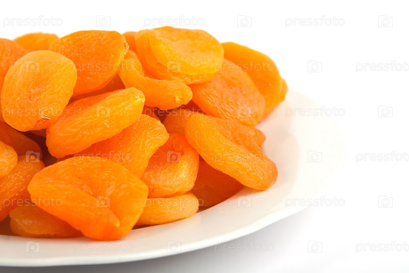 Ближайшее изображение сушеных абрикосов на белом фоне