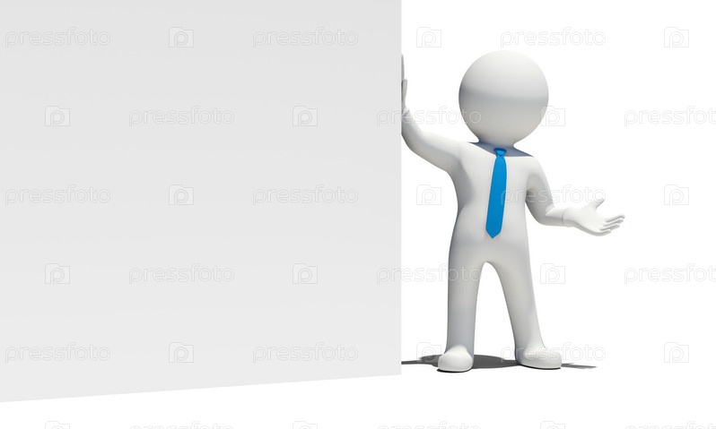 Белый человек держит белую стену