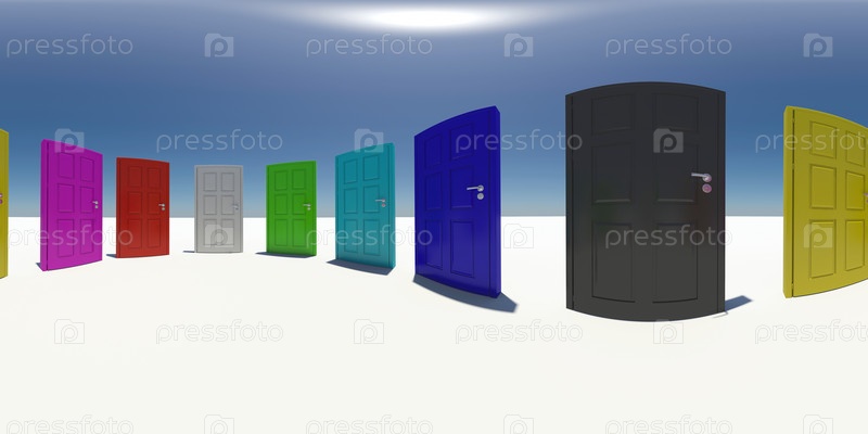 Сферическая панорама с красочными дверями