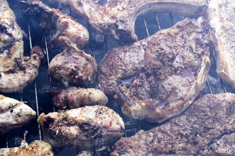 Мясо жарится на углях