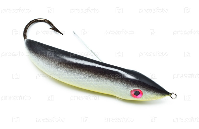 Пластиковая рыболовная приманка на белом фоне