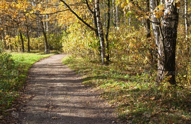 Аллея парка в солнечный осенний день