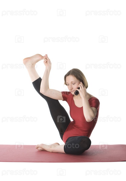 Женщина занимается спортом и говорит по телефону