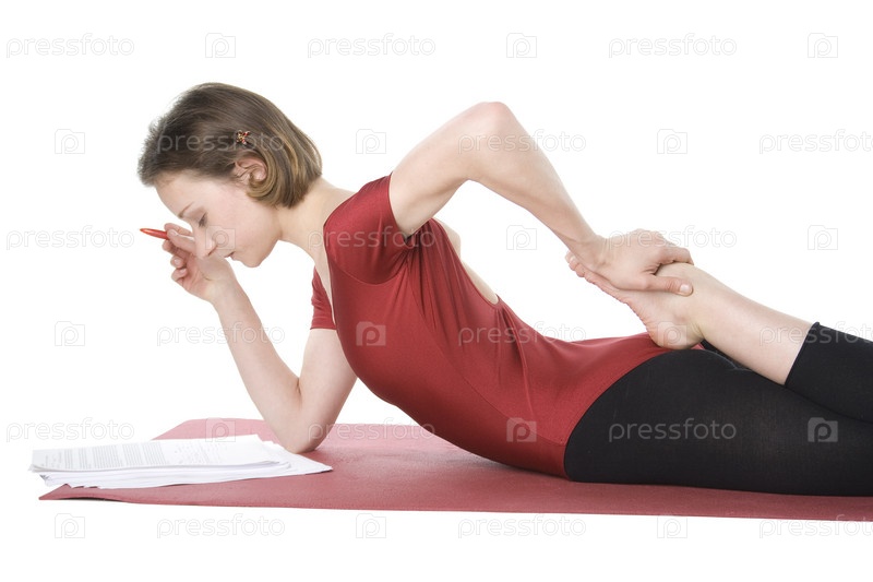 Молодая женщина в спортивной одежде работает с документами