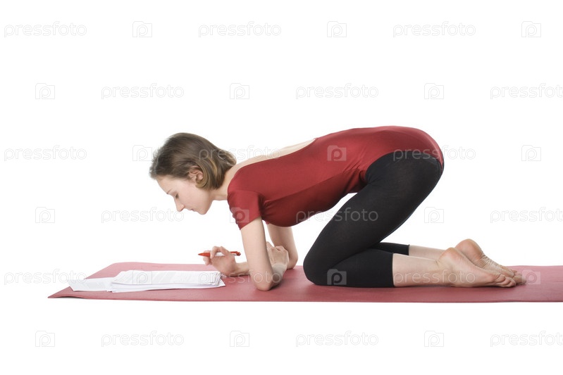 Молодая женщина в спортивной одежде работает с документами