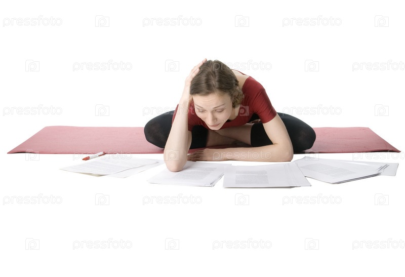 Молодая женщина в спортивной одежде работает с документами