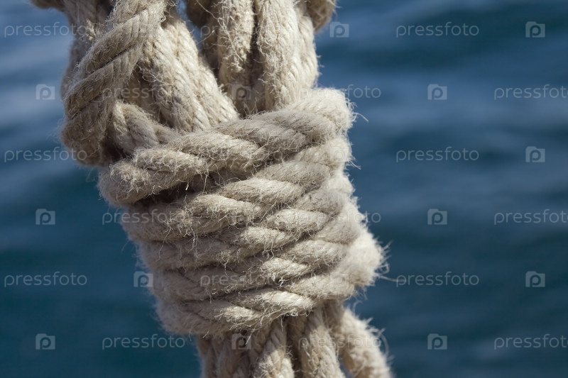 Узел на канате на фоне морской воды