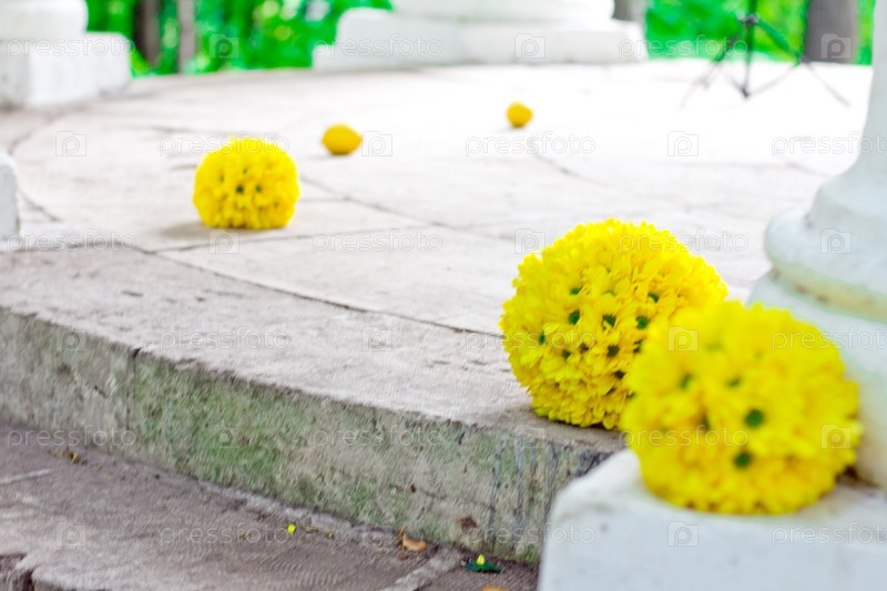Украшения из желтых хризантем на полу ротонды