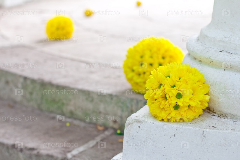 Желтые хризантемы на полу ротонды