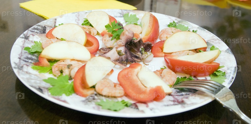Салат с осьминогами и фруктами