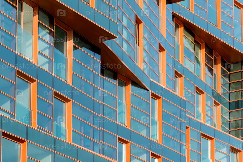 Современное здание с синим зеркальным фасадом