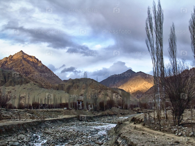 Закат солнца среди скал. Лех, Гималаи, Северная Индия
