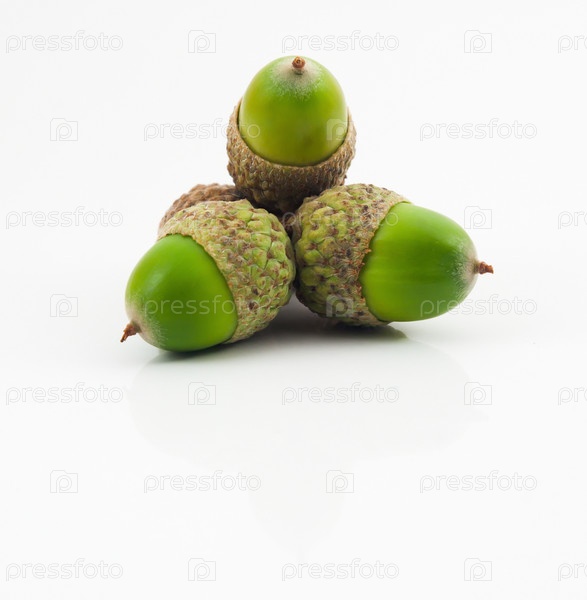Зеленые желуди на белом фоне
