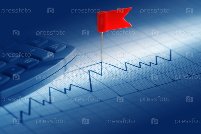 Красный флажок на финансовой диаграмме и калькулятор