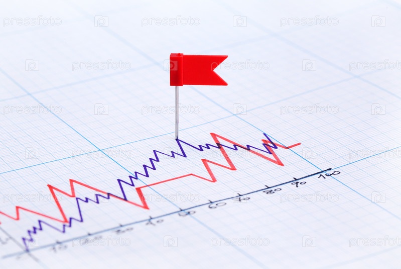 Красный флажок на финансовой диаграмме крупным планом