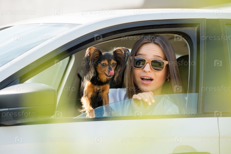 Женщина и собака в машине