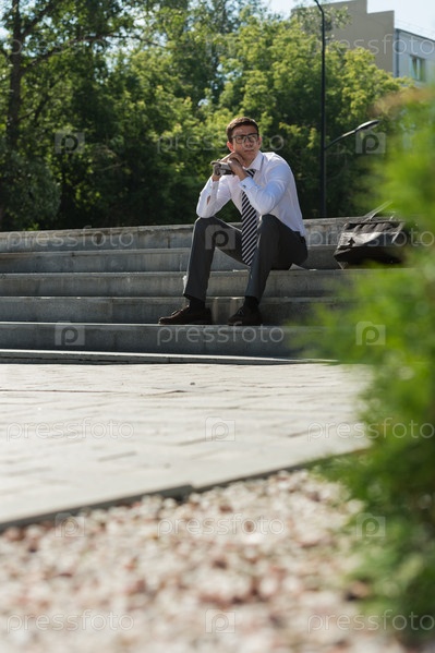 Бизнесмен отдыхает на свежем воздухе