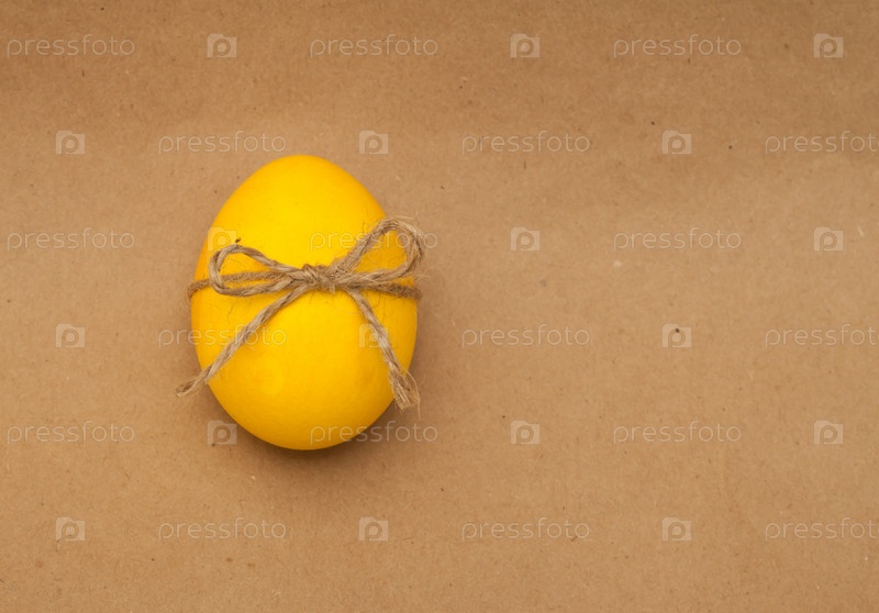 Желтое яйцо с бантом на крафт-бумаге