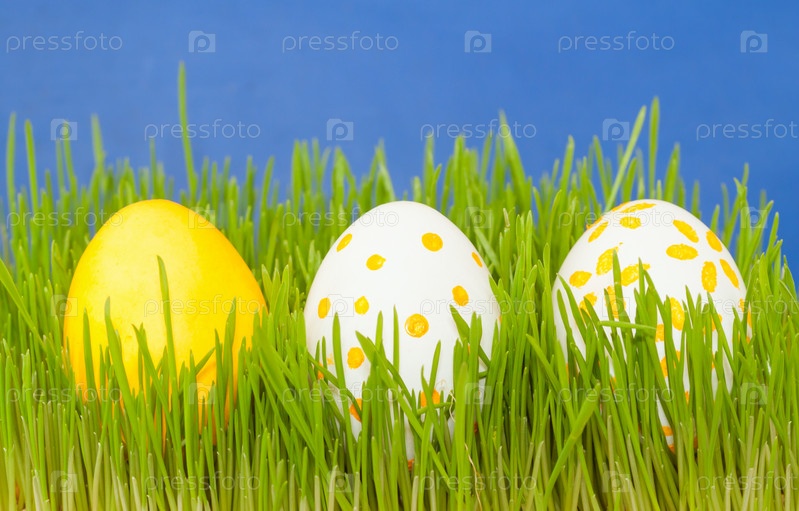 Цветные пасхальные яйца в траве