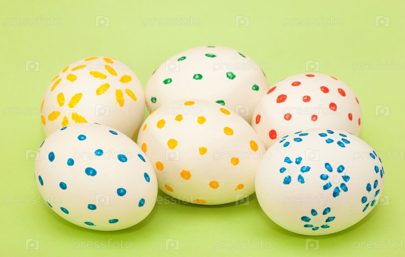 Пасхальные яйца на зеленом фоне